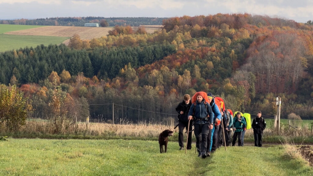 Une autre facette du projet : aller marcher ensemble en Belgique avec ceux qui ne peuvent pas partir, vont partir ou reviennent et souhaitent être en lien avec le groupe, dans le même esprit. L’idée est ici d’inclure des personnes qui ont des permissions de sortie limitées, toujours accompagnées par un ou plusieurs membres de notre équipe.